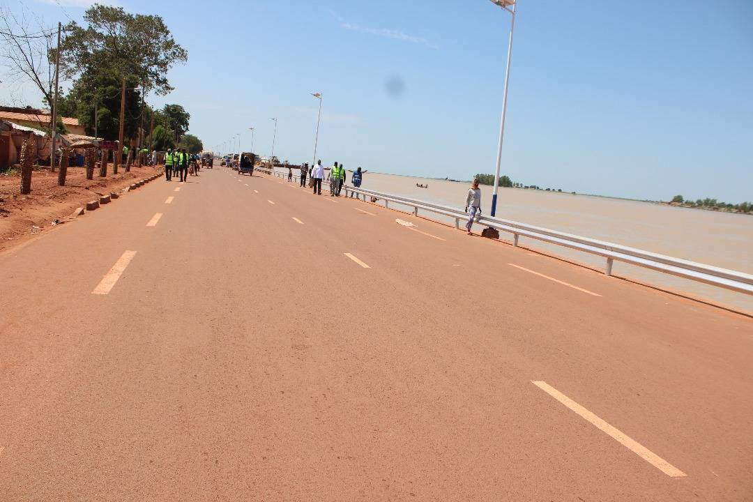 Aujourd’hui, cette voie d’accès au gouvernorat de Mopti a significativement changé avec les aménagements réalisés notamment : l’élargissement et le rehaussement de la chaussée, la pose du goudron, l’installation des lampadaires sur la voie, l’implantation de glisseurs sur une longue partie afin de prévenir les chutes dans le fleuve, l’aménagement des talus en perré- maçonné et les rampes d’accès.